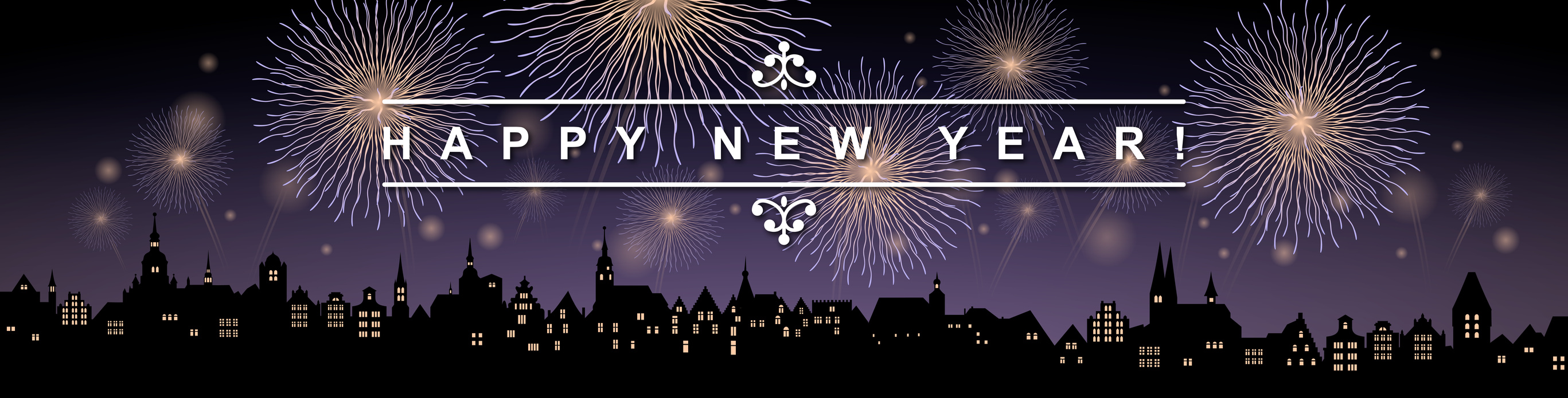 Historische Stadtkulisse mit Silvester-Feuerwerk HAPPY NEW YEAR!